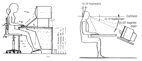Ergonomisch günstigere Gestaltung eines Bildschirmarbeitsplatzes (rechts).