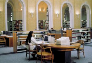 In manchen Bibliotheken, zum Beispiel in der Universitätsbibliothek Leipzig, findet man schon solche teilweise im Tisch versenkte Bildschirmgeräte, die ein wesentlich weniger ermüdendes Arbeiten ermöglichen.