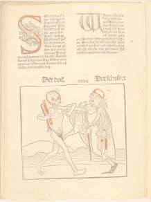 | Abbildung 2: Heidelberger Totentanz, [Heidelberg: um 1488] UB Heidelberg: C 7074 qt. Inc. - Tod und Schreiber |