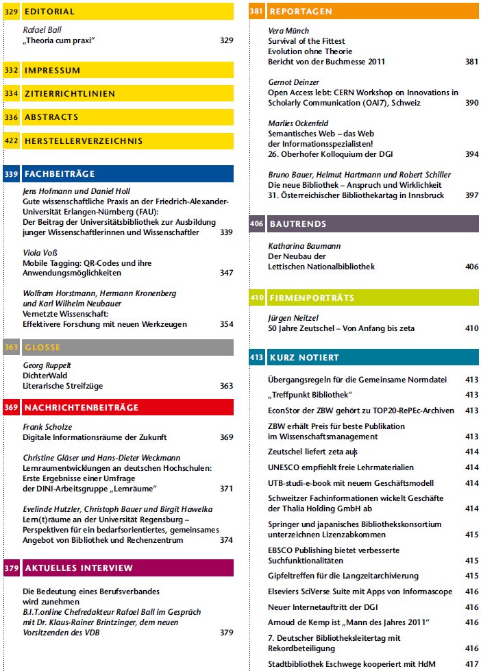 Inhalt B.I.T.online  Ausgabe 4/2011